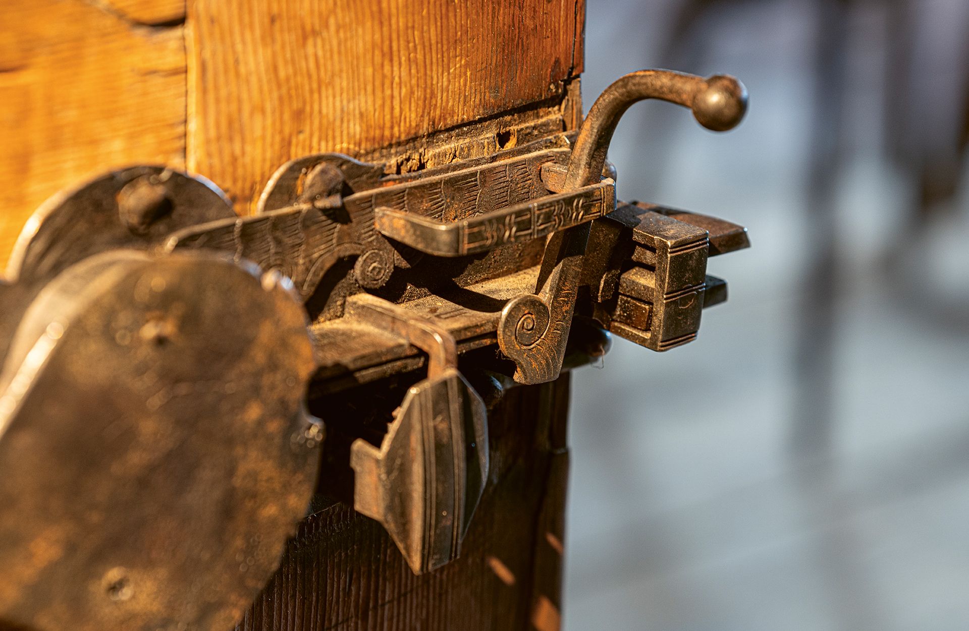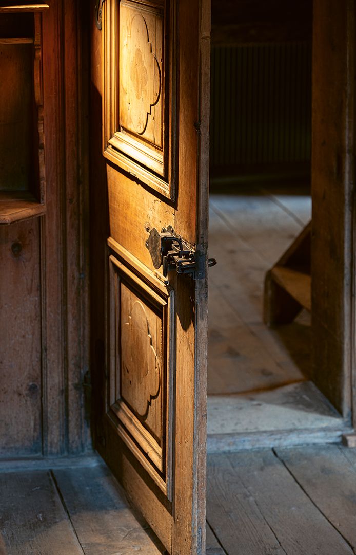 «Holzrausch hat einen grossen Möbel- und einen riesigen Materialfundus – wir retten teilweise die Baumaterialien vor dem Verschwinden.» Christian Widmer sagt stolz: «Wir haben so viel, dass ich das ganze Jahr Ostern habe.» Soll heissen, dass er dauernd etwas sucht. «Man sucht immer wieder Teile, jeden Kloben, jeden Riegel in der Holzart, die man braucht. Du hast eine Originaltür, wo eine Leiste fehlt, da musst du eine Leiste suchen, die zur Tür passt. So eine Eingangstür, das verlangt schnell einmal vier bis fünf Tage Restaurationsarbeit. Die Türe, das Futter und den Türrahmen suchen und aufeinander anpassen, die Beschläge, das Schloss – und es ist bei jeder Tür anders. Ich mache das jetzt bald 15 Jahre. Trotzdem kann ich noch nicht sagen, für diese Tür brauche ich so und so lang. Denn die Umstände sind nie dieselben. Die Projektleitung fragt mich oft, wie lange benötigst du – ich muss dann immer sagen ‹zirka›. Manchmal bin ich schneller, dann wieder brauche ich mehr Zeit. Man hat ein Stübli, baut das Täfer aus. In diesem Augenblick weiss man noch nicht, ist es genagelt, gesteckt, geleimt, das kann man erst sehen, wenn das Täfer entfernt ist. Erst da stellt sich heraus, ob es geschiftet werden muss, ob die Rückwand auch noch erst befestigt werden muss. Ich hatte schon Holz, das von vorn intakt wirkte, das aber zerfiel wie Sägemehl, als ich es auseinandernahm. Man sieht also nicht immer, was dahinter zum Vorschein kommen wird. Dann ist der Aufwand grösser als geplant.» Gleichzeitig ist jeder Eingriff eine Gratwanderung zwischen wiederherstellen und neu machen.