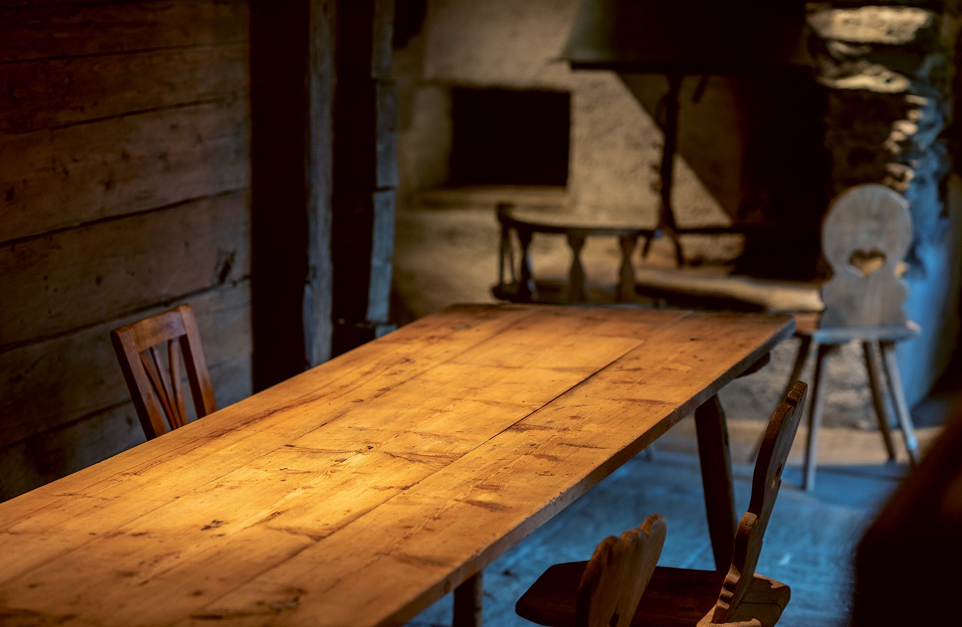Doch Christian Widmer war nicht immer Restaurator: «Ich besuchte nach der Kochlehre und zwei Jahren auf dem Kochberuf die Schnitzerschule in Brienz und wurde dort eidgenössisch diplomierter Holzbildhauer. Dort lernte ich die Handhabung der Maschinen, lernte, wie man die Oberflächen behandelt, den Umgang mit der Kettensäge. Wenn ich jetzt ein passendes Stück Holz und Zeit hätte, könnte ich eine Kuh schnitzen. Dann kam ich zu Holzrausch und begann als Möbelschreiner, zum Erlernen des Restaurierens ging ich zu Restaurator Max Rüedi.» Ein Praktikum beim Restaurator, der auch für die Denkmalpflege arbeitete, sollte seine weitere Berufslaufbahn bestimmen. «Dort lernte ich, alte Bündner Möbel zu restaurieren, alte Türen, Böden, Decken, Truhen, Schränke, Gänterli.» Wie er dabei vorgeht? «Erst wird alles auseinandergenommen und angeschrieben, damit man später weiss, wie das Werkstück wieder zusammenzusetzen ist. Dann werden die einzelnen Teile geflickt. Was nicht mehr da ist, wird ersetzt. Danach wird das Werkstück wieder zusammengebaut.» Zum Schluss gehe es an die Oberfläche. «Sie wird gewaschen und danach so bearbeitet, dass der Charakter herauskommt.» In diesem Objekt hier etwa sind es nicht nur Böden, Decken, Wände und Türen, an denen Widmer arbeitet, das Team von Holzrausch übernimmt nach Evaluation mit dem Kunden zusammen auch die Möblierung der Räume mit ausgesuchten Bündner Bauernmöbeln.